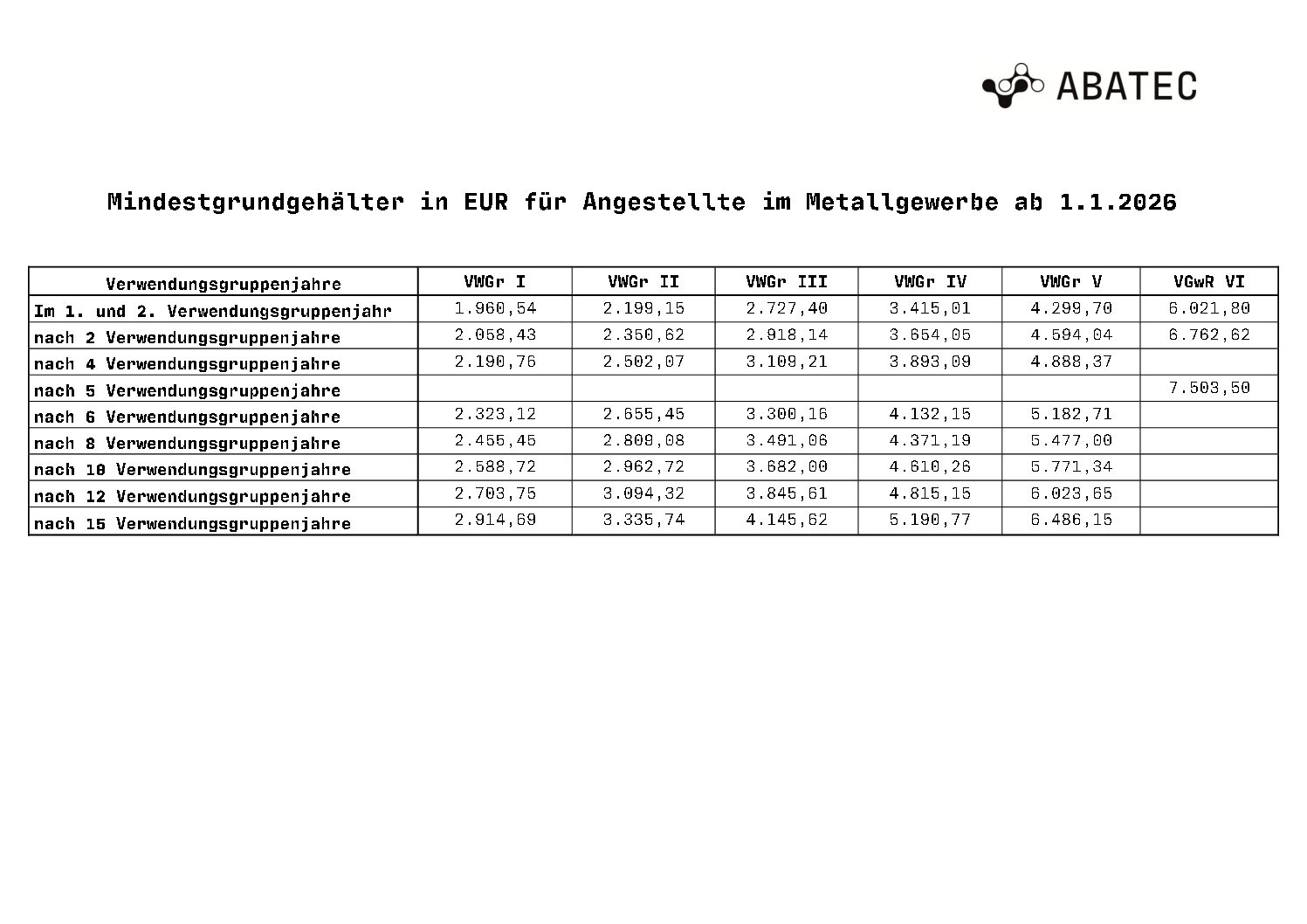 Mindestgrundgehälter für Angestellte im Metallgewerbe ab 012026